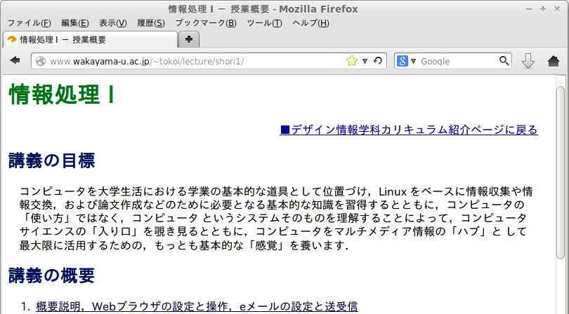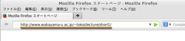 この講義の Web ページを開きます.アドレスバーに次の URL を入力してください.Ctrl-L をタイプすれば,アドレスバーの変更がすぐにできます.