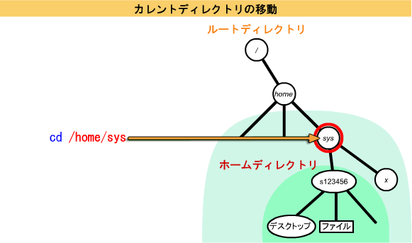 $ pwd[Enter] /home/sys/s123456 ←ホームディレクトリのパス |