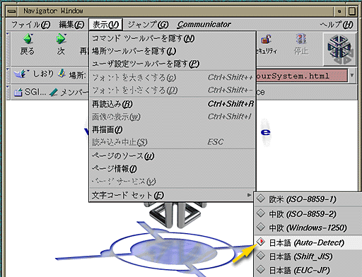 - もう一度メニューバーの "表示" メニューから "文字コードセット" を選び、