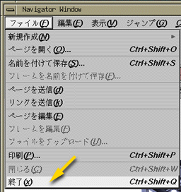 Netscape の場合は "ファイル"→"終了"([Ctrl]