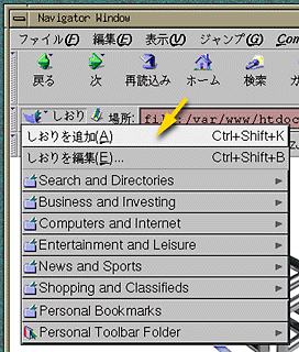Netscape 本体のウィンドウ上部の "場所"