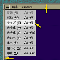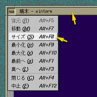 - メニューボタンをクリックし、“サイズ Alt+F8" を選んだ後