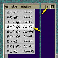 - メニューボタンをクリックし、“最小化 Alt+F9" を選ぶ