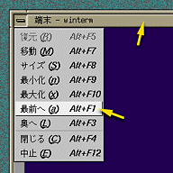 - メニューボタンをクリックし、“最前へ Alt+F1" を選ぶ