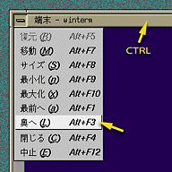 - メニューボタンをクリックし、“奥へ Alt+F3" を選ぶ