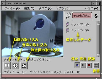 そのあと、mediarecorder の“再生”ボタンをクリックしてください。 さっき取り込んだ画像が表示されたでしょうか?