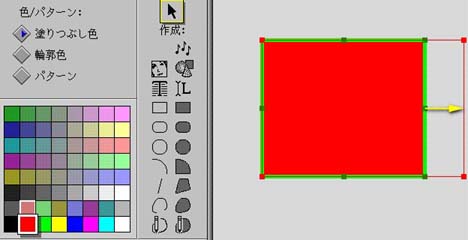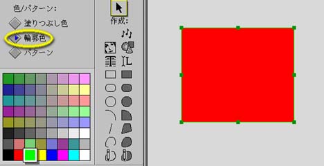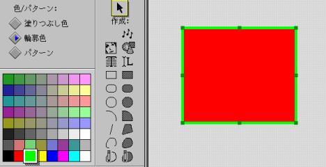選択されている状態(周囲に小さな緑色の“ハンドル”が付いている)