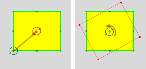 回転ハンドルの中心をドラッグして回転の中心に移動し、