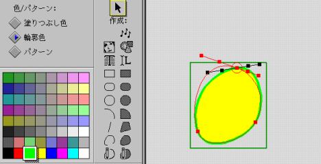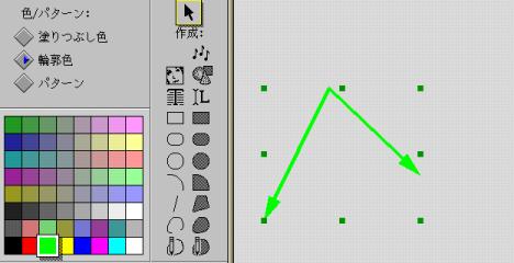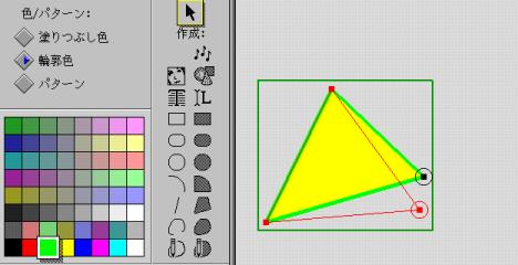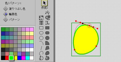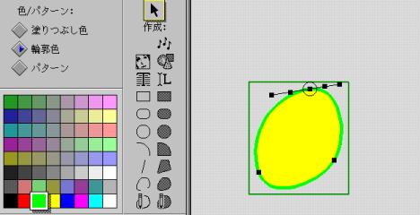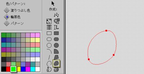 閉じた曲線も折れ線と同様に最後の点の位置はマウスの中央ボタンで指定します。