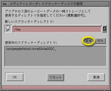 “新しいスクラッチ・ディレクトリ”に /tmp とタイプした後、 “追加”のボタンをクリックしてください。