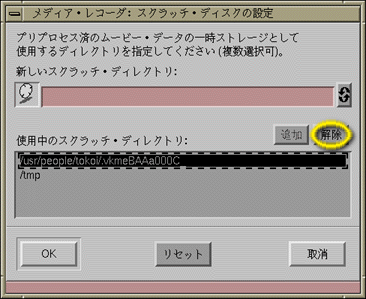 “使用中のスクラッチ・ディレクトリ”の /usr/people/... で始まる方をマウスでクリックして選択し、 その後“解除”のボタンをクリックしてください。