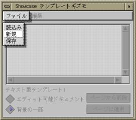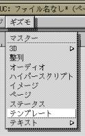 複数のページからなる文書を作成する場合、 ページ間でレイアウトが統一されていた方が望ましいことが、 少なからずあります。 そういうときには、 あらかじめページの“テンプレート”を作成しておきます。 テンプレートは、 異なるページの間で共有される『背景』のようなものです。 メニューバーの“ギズモ”から“テンプレート”を選んでください。