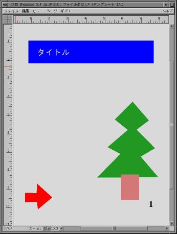 この状態で Ctrl-PageDown をタイプするなどしてページを追加すると、 追加されたページにも現在のページに適用されているテンプレートが適用されます。 とりあえず3ページ追加して、全部で4ページにしてください。