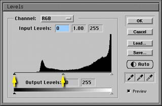 この場合も同様にメニューバーの "Image" メニューから "Adjust" → "Levels ..." を選んでください。 すると下のようなウィンドウが現われます。