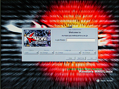 Linux や UNIX 系オペレーティングシステムの場合、 利用に先立って、 これからそのコンピュータを利用しようとする利用者の登録名(ログイン名)と、 その暗証番号(パスワード)をコンピュータに教えてやる必要があります。 この作業をログインといいます。