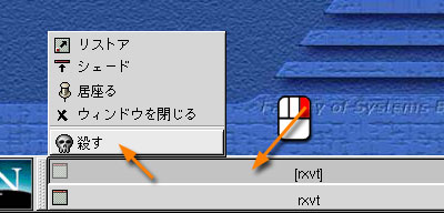 X Window Ssytem 上で動作しているアプリケーションプログラムが通常の方法では終了できなくなったり、 「閉じる」ボタンをクリックしてもウィンドウが閉じなくなったときは、強制終了することができます。