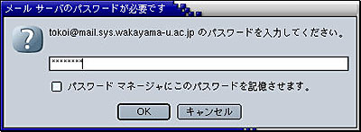 ログインのときに使うパスワードを入力してください。 メールを読むたびにパスワードを入力するのが面倒なら、パスワードを記憶させておいてください。