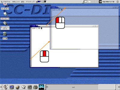 手前にあるウィンドウを奥に送って隠れているウィンドウを表に出す方法は、前節の2と同じです。
