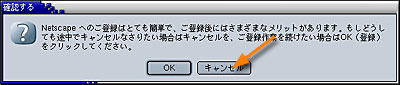 有効化はしてもかまいませんが(Netscape 社から無料のメールアドレスがもらえます)、 この授業では必要ないので、ここではキャンセルしてください。 すると念押しのウィンドウが現れます。