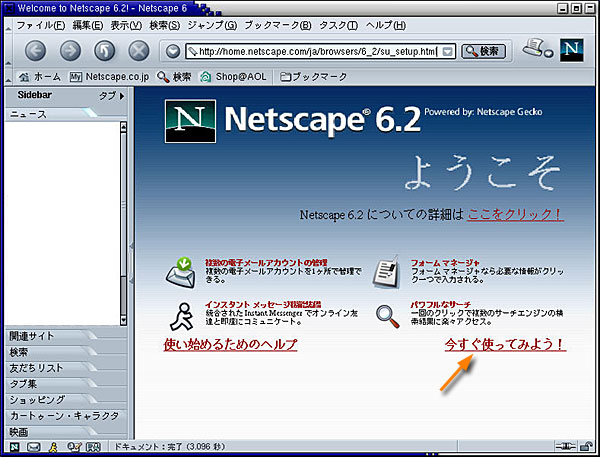 ここでもキャンセルをクリックしてください。しばらく待っていると、Netscape の本体が起動します。