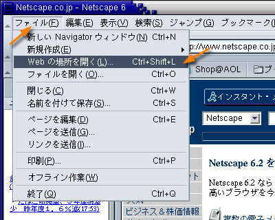 メニューバーのファイルメニューから "Webの場所を開く" を選ぶか、 Ctrl-Shift-L をタイプしてください。すると、次のようなウィンドウが現れます。