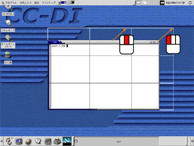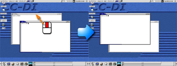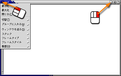 「閉じる」ボタンや「最小化」ボタンをマウスの右ボタンでクリックすると、 ポップアップメニューが現れます。