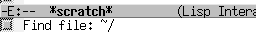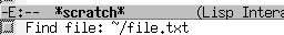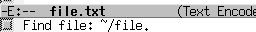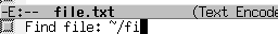 | C-x C-f をタイプする。ミニバッファに開くファイル名を聞いてくる。 | |