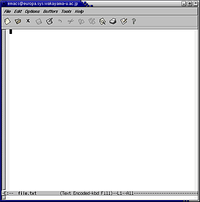 ファイルが存在すれば、バッファ内にそのファイルが表示されます。今は新規作成なので、バッファ内は空になっているはずです。ミニバッファには (New File) と表示されているはずです。