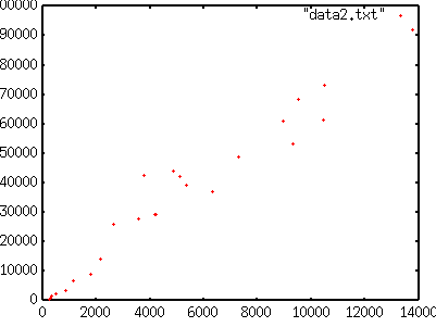 gnuplot> plot "data3.txt" using 2:3[Enter] |
