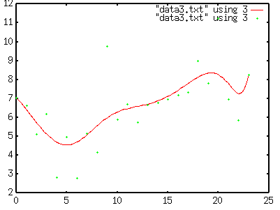 gnuplot> plot "data3.txt" using 3 smooth cspline[Enter] |