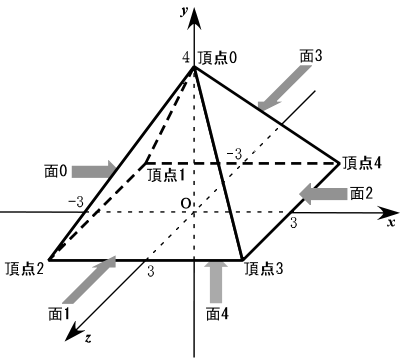 この授業の第8回にある下の図を Tgif で描いてみよ(まったく同一である必要はない)。ファイル名は pyramid.obj とし、図中に自分の学籍番号と氏名を書き込んでおくこと。