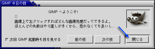 毎回起動すると、「今日の技」を教えてくれます。技を会得したら、「閉じる」をクリックしてください。