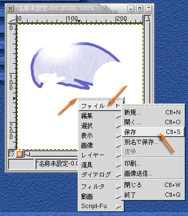 Ctrl-S をタイプするか、マウスの右ボタンで現れるメニューの「ファイル」から「保存」を選んでください。