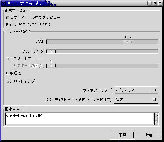 JPEG 形式で保存するときは、次に保存する際の品質(画質)を設定します。