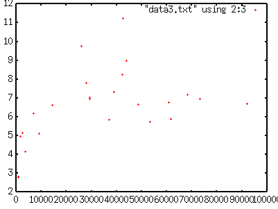 gnuplot> plot "data3.txt" using 2:3[Enter] |