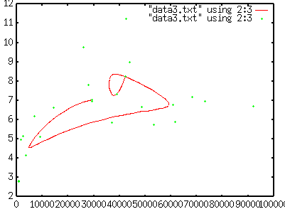 gnuplot> plot "data2.txt" smooth sbezier, "data2.txt" smooth unique[Enter] |