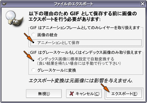 「アニメーションとして保存」を選んだ後,「エクスポート」をクリックしてください.