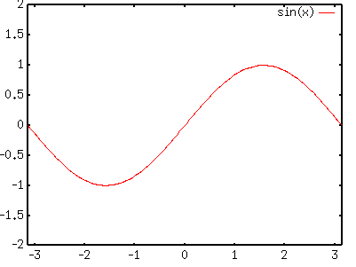 gnuplot> plot [-pi:pi] [-2:2] sin(x)[Enter] |