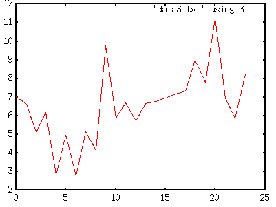 gnuplot> plot "data3.txt" using 3[Enter] |