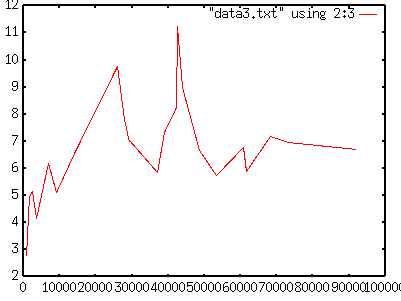 gnuplot> plot "data3.txt" using 2:3[Enter] |