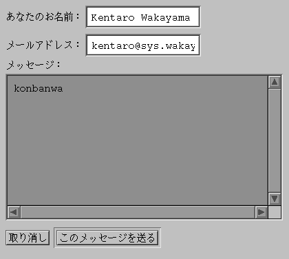 http://www.sys.wakayama-u.ac.jp/~s035xxx/myform.html (s035xxx は自分のログイン名)を Netscape で開けば、このページは次のように表示されると思います。